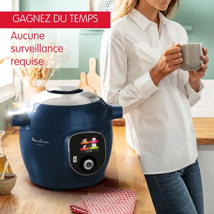 Le Cookeo+ 150 recettes Bleu est un multicuiseur intelligent qui appartient à la gamme des Cookeo de Moulinex. Comme les autres modèles, il permet de cuire sous pression, mijoter, dorer, cuire à la vapeur ou encore réchauffer les aliments.