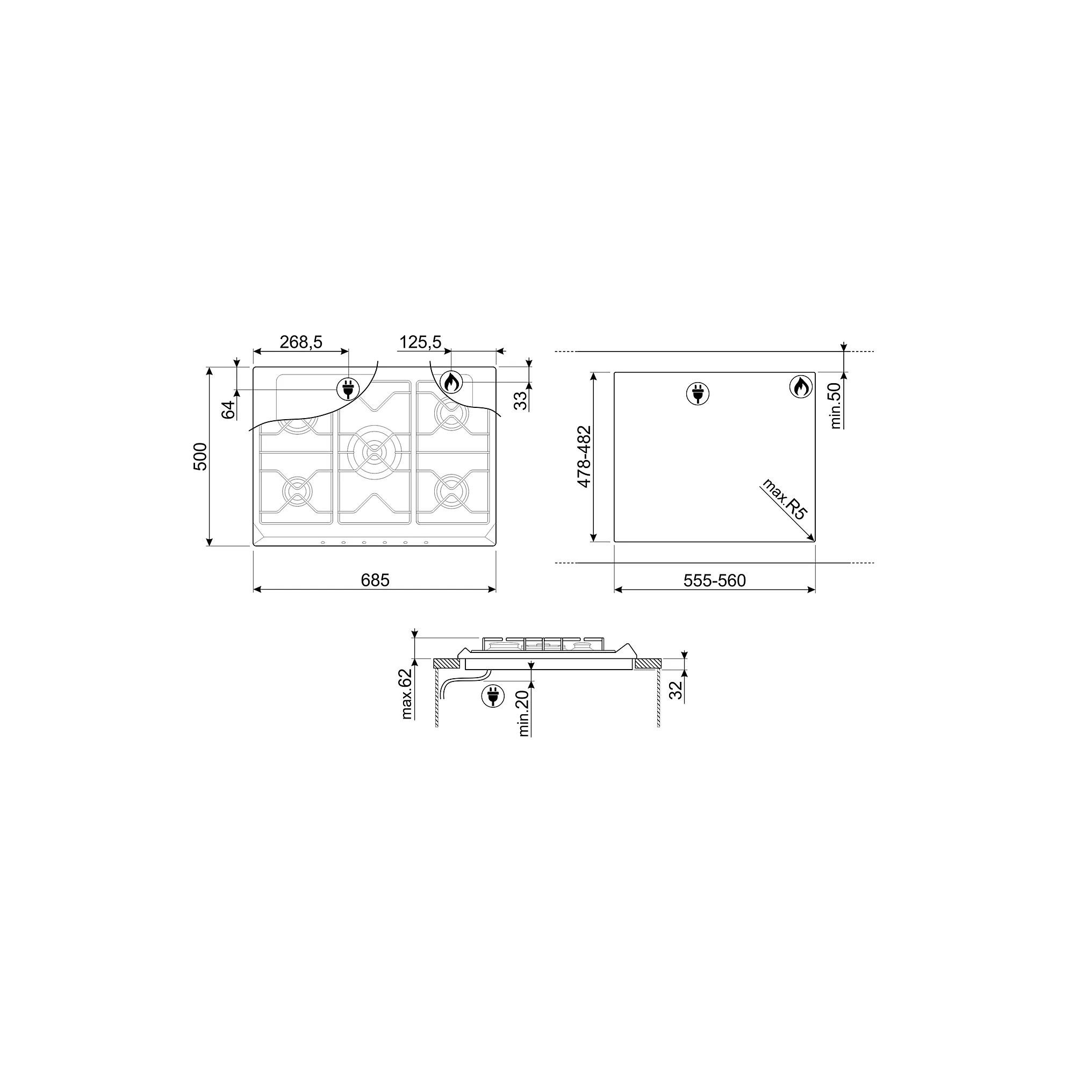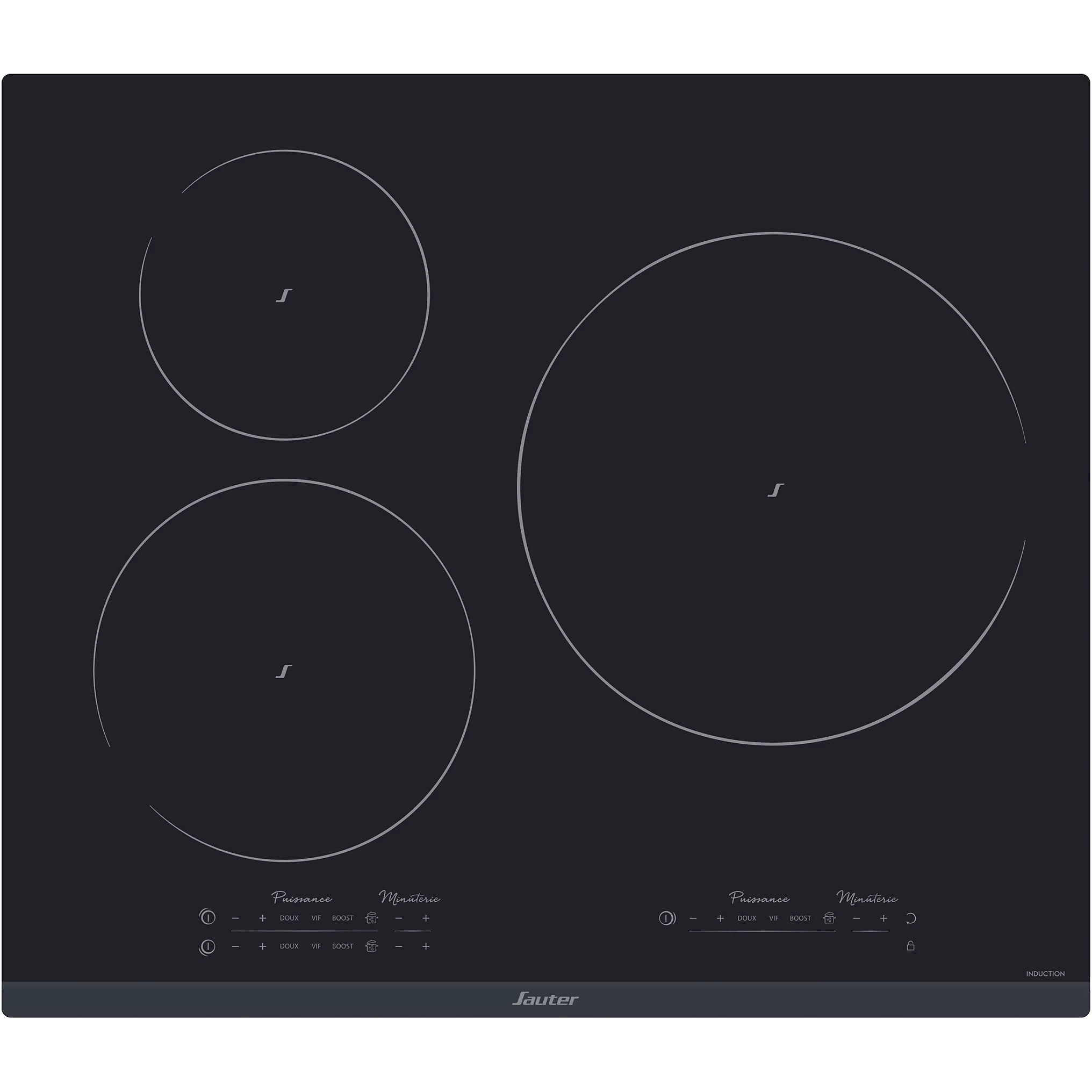 Encastrement standard L 56cm3 foyers dont 1 ConneXion Zone – Booster max 3600WAccès direct par foyer – Bandeau de commande frontal – Contrôle sensitifFonctions automatiques 6ème Sens : faire bouillir, faire fondre, maintien au chaud, faire mijoter