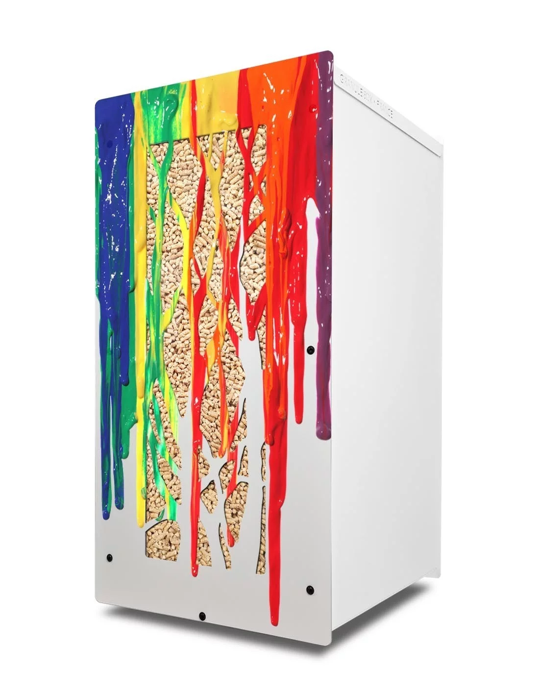 Le coffre à pellets Granulebox Art Gouli est un mobilier de stockage unique, dédié aux granulés de bois. Alliant originalité et esthétique, ce meuble se distingue par son design artistique et sa praticité. Sa finition imprimée directement sur la peinture apporte une touche colorée et élégante,