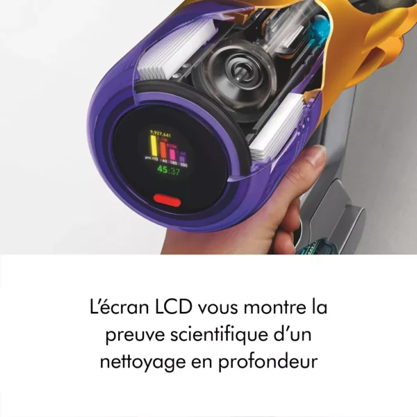 Le moteur Dyson Hyperdymium, associé à une optimisation acoustique, permet de réduire le bruit sans compromettre la performance. Ainsi, il est possible de nettoyer à tout moment de la journée, sans déranger la famille ou les voisins.