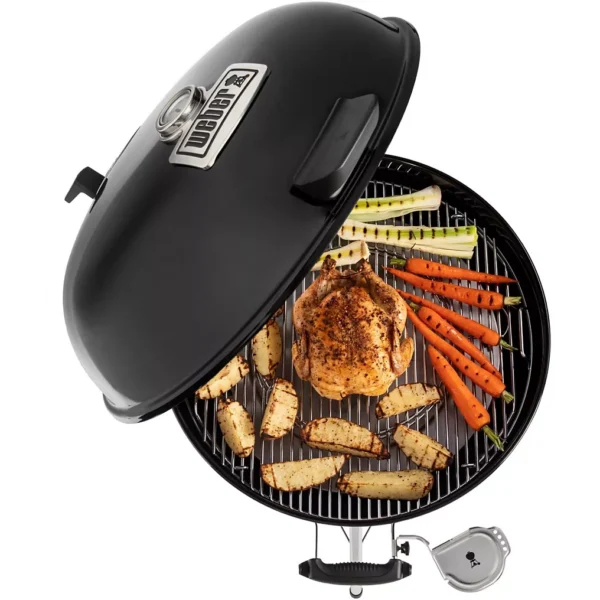 Le barbecue charbon WEBER Master-Touch GBS Premium E-5775 représente l’une des versions les plus avancées et les plus complètes de la gamme Master-Touch, alliant performance, sophistication, polyvalence extrême et qualité de fabrication exemplaire. Conçu pour les passionnés exigeants, les amateurs de grillades authentiques et les adeptes de la cuisine extérieure gastronomique, ce modèle Premium repousse les limites du barbecue charbon traditionnel. Grâce à ses innovations exclusives – dont le système GBS, le mode fumage, la charnière de couvercle pratique, la régulation de l’air ultra précise et les matériaux de haute qualité – il transforme chaque repas en une véritable expérience culinaire.