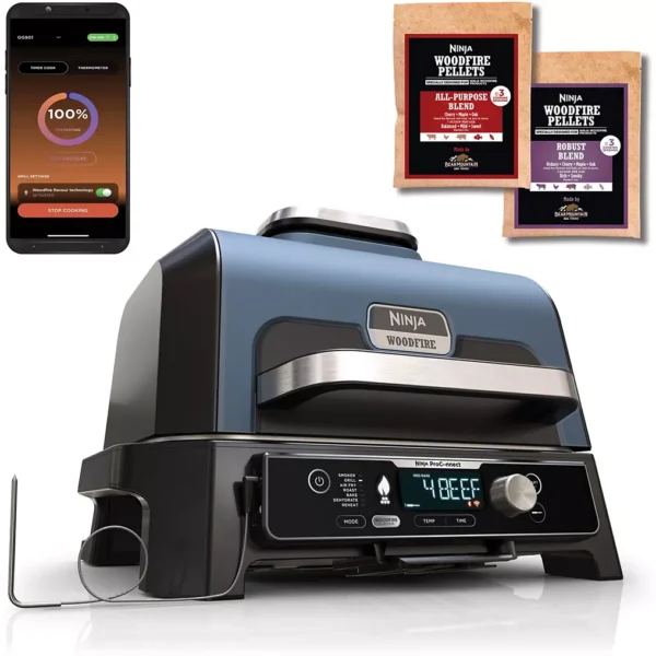 Le Barbecue électrique NINJA OG901EU Woodfire Pro Connect représente une nouvelle génération d’appareils dédiés à la cuisine en plein air. Conçu pour offrir une puissance de cuisson exceptionnelle, des saveurs authentiques de bois fumé et un contrôle intelligent via connexion mobile, ce barbecue électrique incarne l’innovation au service du plaisir culinaire.