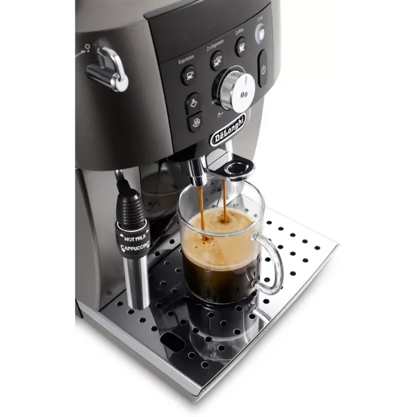 L’Expresso Broyeur DELONGHI Magnifica S Smart FEB2533.TB est l’une des machines automatiques les plus réputées de la marque Delonghi, alliant simplicité d’utilisation, performance et durabilité. Conçue pour offrir un café riche, aromatique et préparé à la perfection, elle reprend tout le savoir-faire italien en matière d’extraction espresso. Ce modèle se distingue par son design élégant noir titane, son panneau de commande intuitif, son broyeur performant et sa capacité à produire des boissons sur mesure selon les préférences de chaque utilisateur.