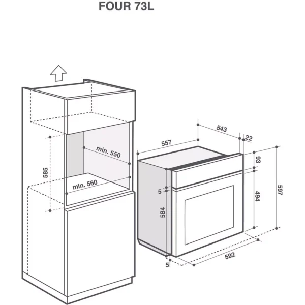 - Avantage de la chaleur tournante pulséele four est équipé d’un ventilateur et d’une résistance circulaire situées sur la paroi arrière du four, pour une cuisson simultanée de différents plats sur plusieurs niveaux