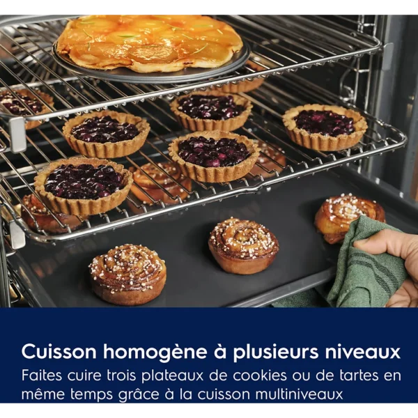 Cette homogénéité évite les cuissons inégales. Les plats cuisent de façon uniforme. Les viandes restent juteuses sans brûler l’extérieur, les gratins gratinent sur toute la surface, et les gâteaux montent de façon régulière. Le four assure des résultats constants, même avec des préparations variées.