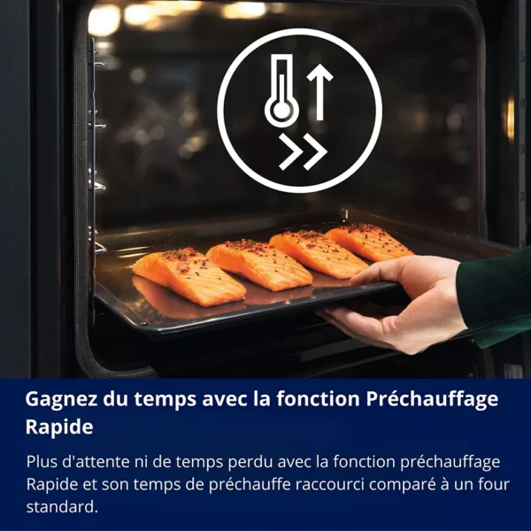 Les options sont accessibles via des touches claires. Les menus restent lisibles. L’utilisateur peut modifier les paramètres rapidement. Cette ergonomie améliore l’expérience utilisateur. Elle rend le four agréable au quotidien, sans complications inutiles.