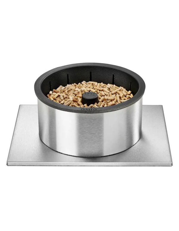 Le Qaïto Q20 peux contenir 1,7kg de pellets et dégage une puissance de 10kW (puissance calorifique selon à la quantité de pellets). Entièrement fabriqué en France comme l’ensemble de nos rangements à granulés de bois, le qaïto pèse 6,4Kg. Une base est en inox plié surmonté d’une chemisé usinée par roulage et à l’intérieur de laquelle est placé le brûleur en fonte.
