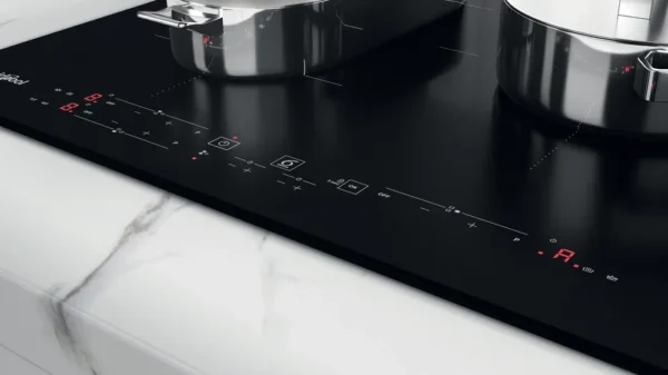 La Plaque induction WHIRLPOOL WBB3760BF 56cm Connection Zone appartient à la nouvelle génération de plaques à induction intelligentes conçues pour s’adapter à tous les styles de cuisine. Grâce à sa largeur compacte de 56 cm, elle s’intègre facilement dans la plupart des plans de travail, tout en offrant une grande surface utile grâce à la fonctionnalité Connection Zone. Cette zone permet de fusionner deux foyers afin d’obtenir un espace de cuisson plus large et uniforme, idéal pour les grands plats, les sauteuses ou les ustensiles aux formes spécifiques.