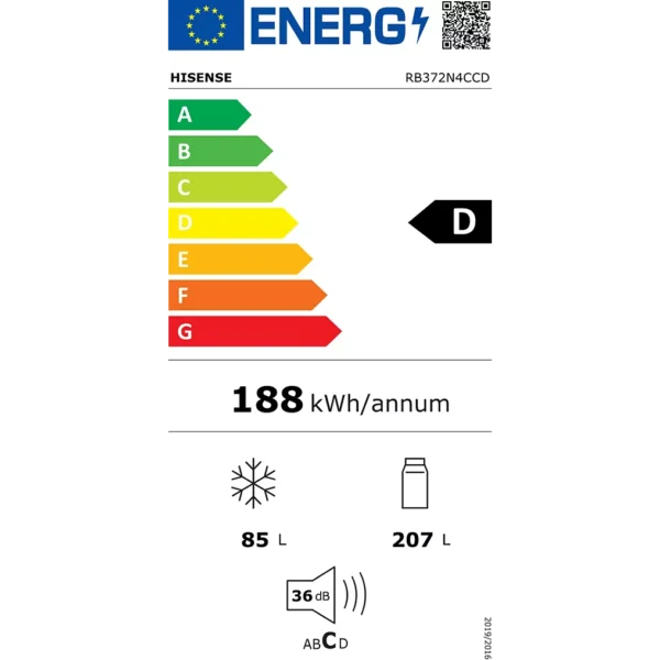 Réfrigérateur combiné HISENSE RB372N4CCD — Pratique, performant et adapté à la vie quotidienne